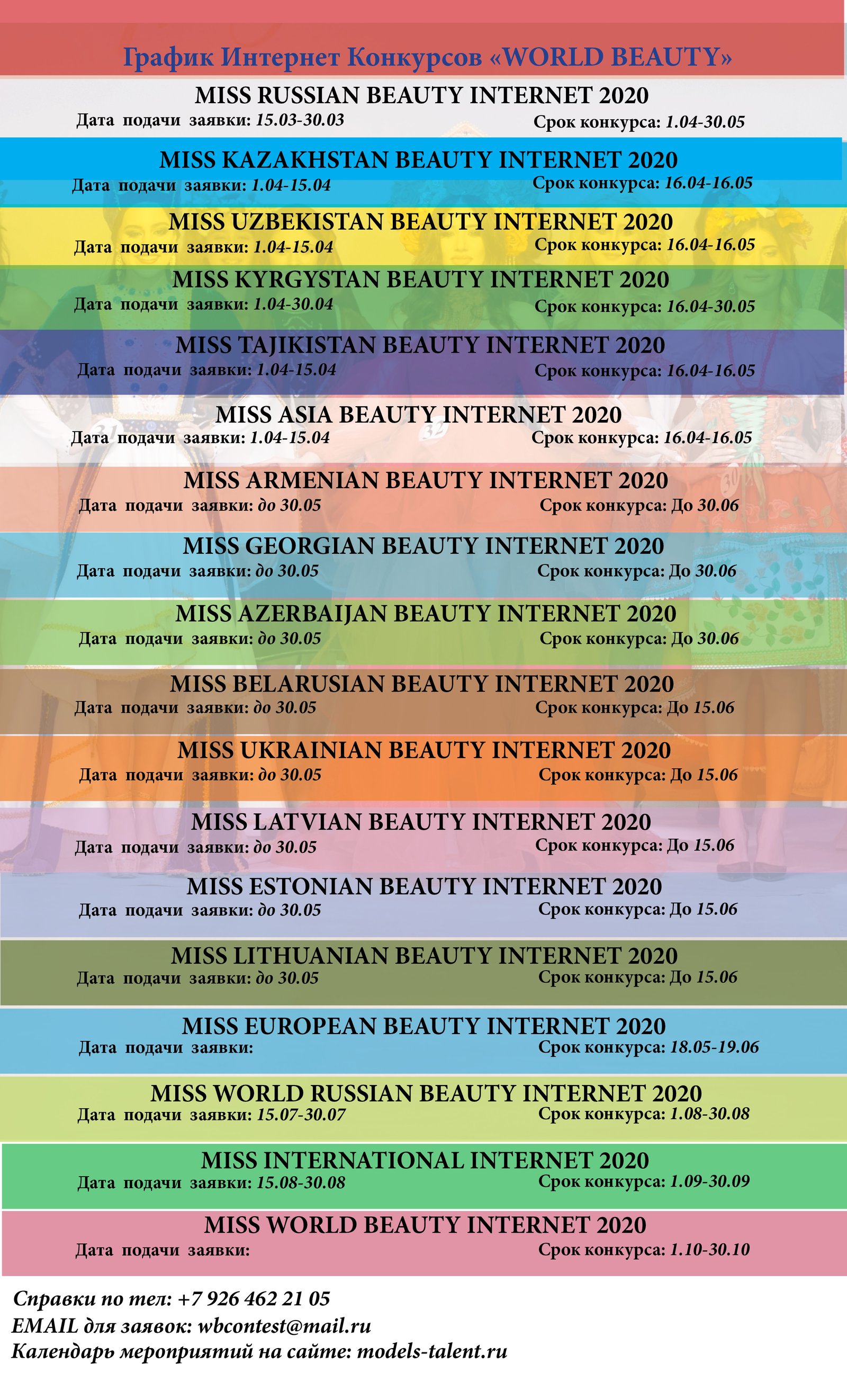 ВНИМАНИЕ! Всю информацию об интернет конкурсах красоты Вы сможете увидеть на сайтах: missrussiaintrnet.ru missworldinternet.com